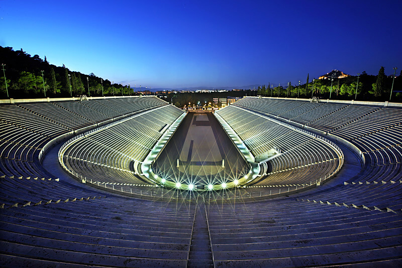The Stadium hosted the first modern Olympic Games in 1896. Reconstructed from the remains of an ancient Greek stadium, the Panathenaic is the only stadium in the world built entirely by marble (from Mount Penteli) and is one of the oldest in the world.