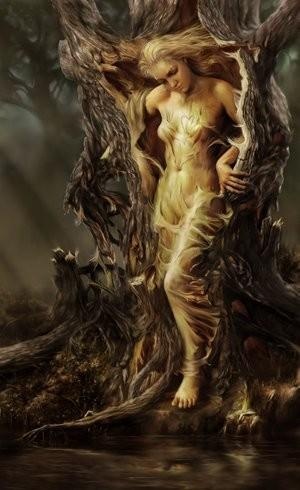 spirits who were connected with the trees. It is said that they actually lived inside a tree and if the tree died, the Hamadryad associated with it also died