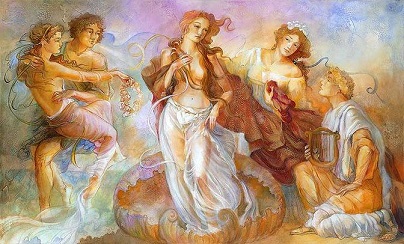 They were the ones who had found and welcomed her on the island of Cyprus when she was born out of the sea-foam. They were the ones who hooked her up with proper clothes (flowing robes and flowers!) and then followed her around after that like groupies.