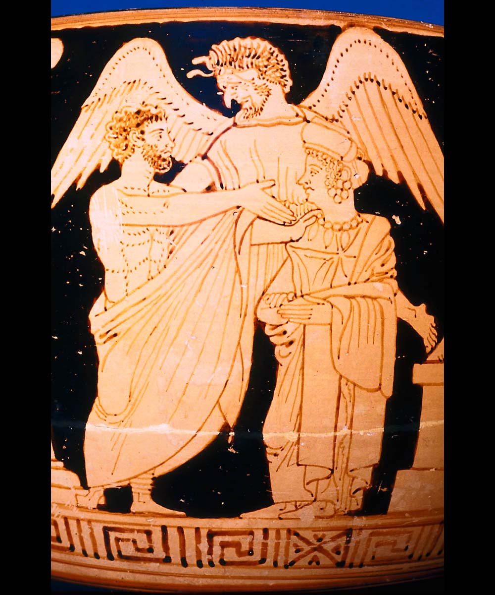The scene of death is described in Euripides' play Alcestis, where Thanatos, the god of death, takes Alcestis to the Underworld. As Alcestis descends, Admetus discovers that he actually does not want to live: