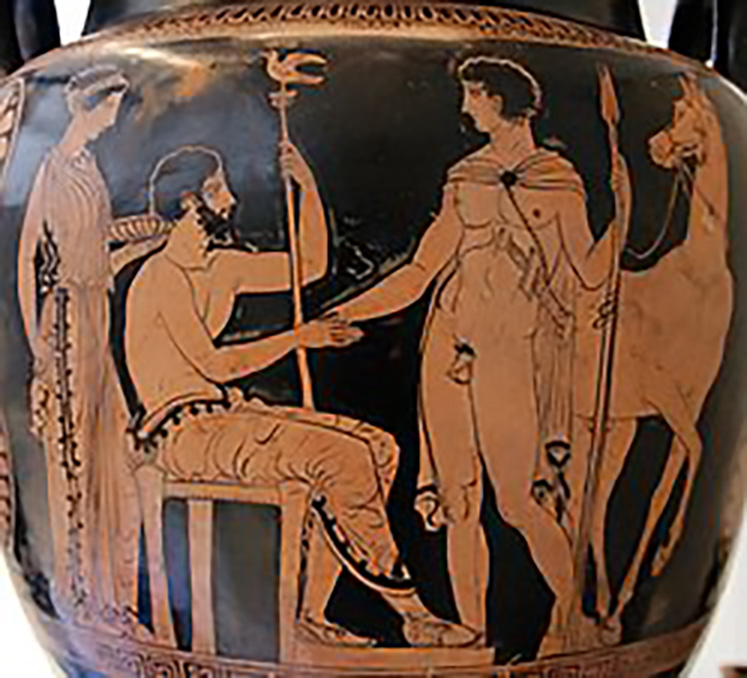 Still without a male heir with his previous marriages, Aegeus asked the oracle at Delphi for advice. According to Pausanias, Aegeus ascribed this misfortune to the anger of Aphrodite and in order to conciliate her introduced her worship as Aphrodite Urania (Heavenly) in Athens.