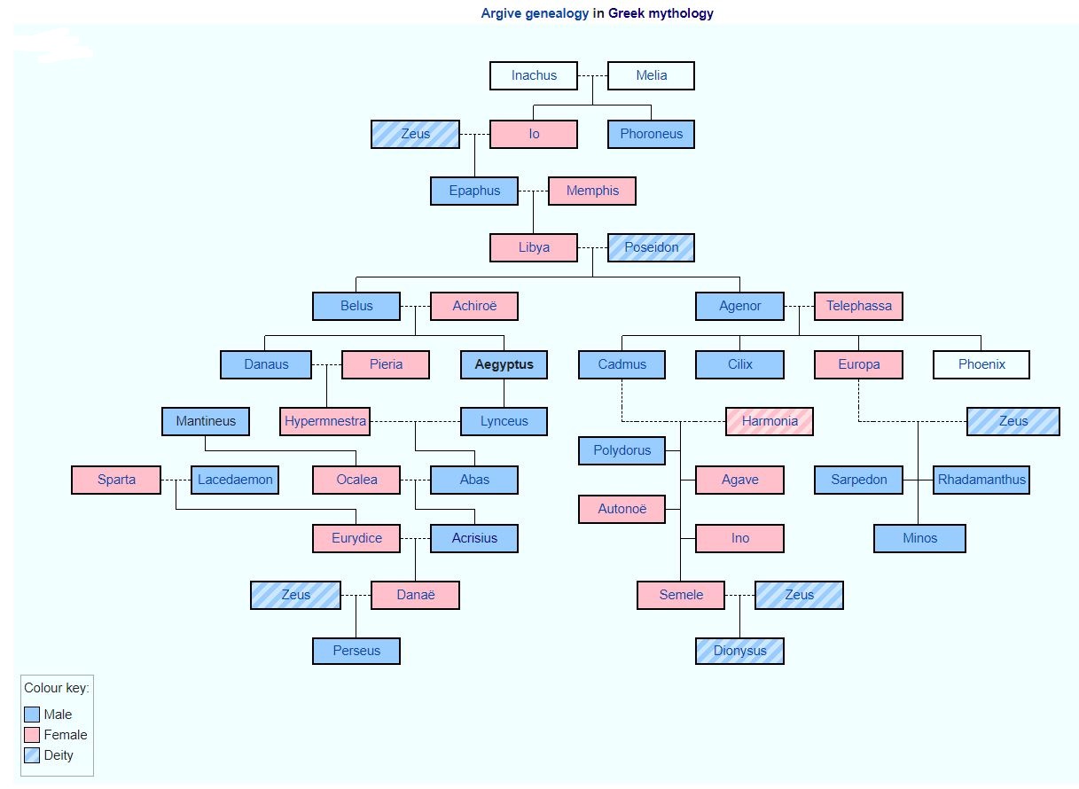 Aegyptus was a descendant of Io, the naiad beloved by Zeus, who having been turned into a heifer, had wandered the earth before she arrived in North Africa.
