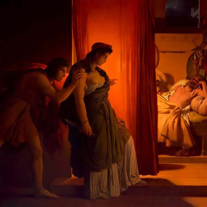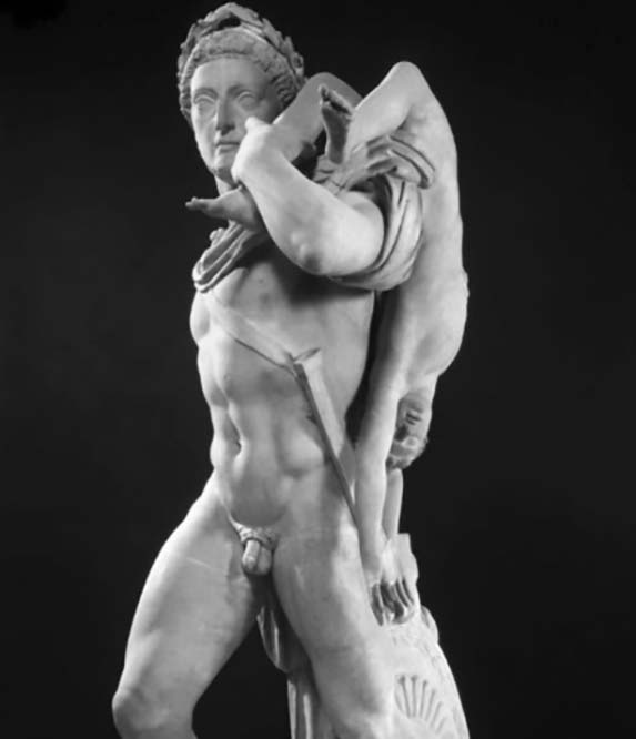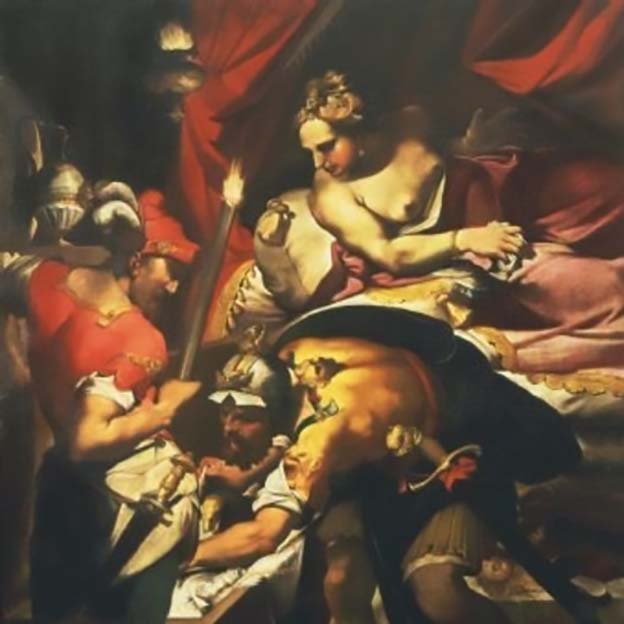 But Laius obtained mercy from the king, since Pelops did not wish to punish a man on account of his love. But Queen Hippodamia plotted against bastard Chrysippus, and arguing that he would become a contestant for the throne, she tried to persuade Atreus and Thyestes to assassinate him. Since they refused, Hippodamia visited at night Laius and Chrysippus when they were asleep, and taking the sword of the Theban, she wounded Chrysippus and fixed the sword in his body, so that Laius would be suspected.