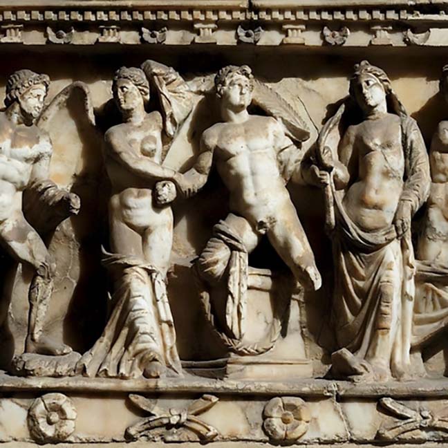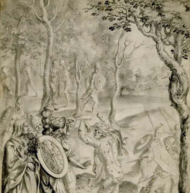 Menelaus was then said to have horribly mutilated the body of Deiphobus, cutting the ears, nose and limbs from the son of Priam. The mutilated soul of Deiphobus was subsequently seen by his former comrade Aeneas in the Underworld; with Deiphobus telling Aeneas of the treachery of Helen. While with Aeneas, he begs the gods for revenge against the Greeks.