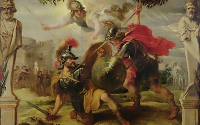 Achilles was convinced that King Priam was looking to end the war, and was offering to Achilles the hand in marriage of his own daughter Polyxena. Achilles was thus convinced to meet with Polyxena in the Temple of Apollo, there he was greeted by Deiphobus, but as Deiphobus hugged Achilles in greeting, Paris came up behind the Achaean hero, and stabbed him in the back.