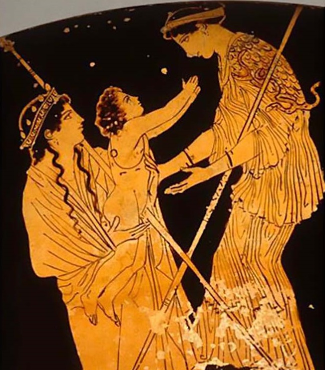 During the struggle, his semen fell on her thigh, and Athena, in disgust, wiped it away with a scrap of wool (ἔριον, erion) and flung it to the earth (χθών, chthôn). As she fled, Erichthonius was born from the semen that fell to the earth. Athena, wishing to raise the child in secret, placed him in a small box. And then made sure no one would ever find out by giving him away.