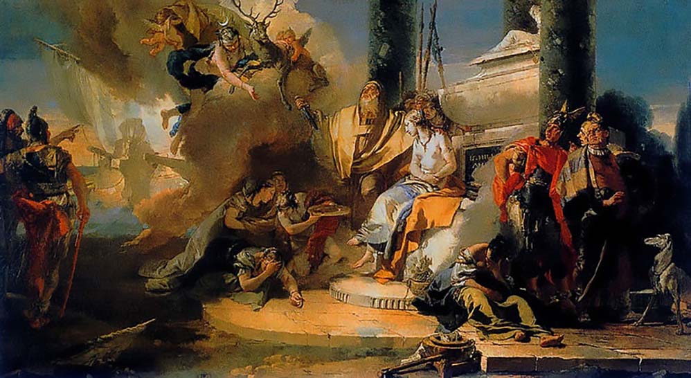 "… suppose you sacrifice the child; what prayer will you utter, when it is done? what will the blessing be that you will invoke upon yourself as you are slaying our daughter?" (Clytaemnestra to Agamemnon. Euripides, Iphigenia in Aulis 1185).