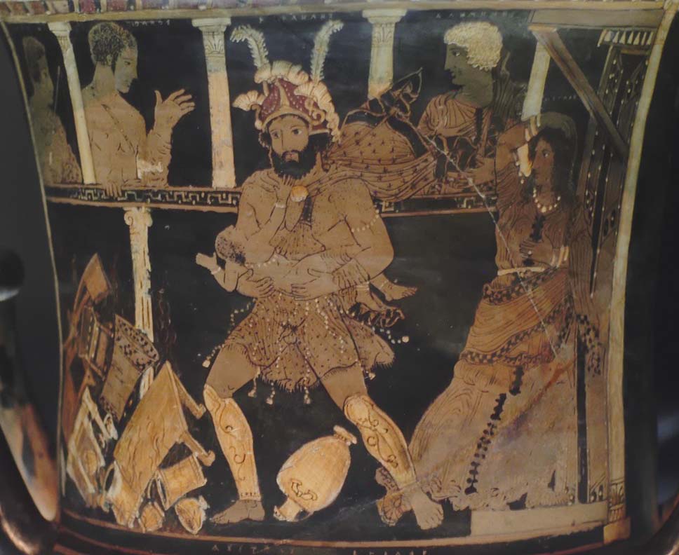 Creon was not the only one who gave gifts to Heracles, for amongst the gods, Apollo gave to Heracles bow and arrows, Hermes provided a sword and Hephaestus a golden coat of chain mail. Hera though gave a totally different gift, for to strike back at Zeus’ illegitimate son she sent down Madness to Thebes.
