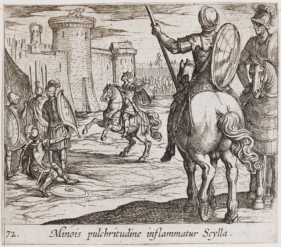 When Minos' son Androgeos had won the Panathenaic Games the king, Aegeus, sent him to Marathon to fight a bull, resulting in the death of Androgeos. Outraged, Minos went to Athens to avenge his son, and on the way he camped at Megara where Nisos lived.