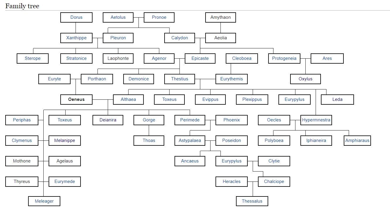 In some accounts, Polyxo was called the sister of Meleager and thus, can be counted among the daughters of Oeneus.