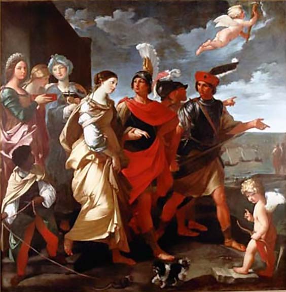 But as before, Paris thought that those flames just described the love he felt was burning in his heart. So he left, trusting that Aphrodite, whom he had painted on his sail, would favor a gentle breeze and a calm sea; for having rose from the waves, it was natural to think that she could tame them, which apparently she did, by putting him on the way that was also to calm his heart.