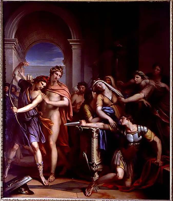 One of them, Deiphobus was so angry on account of his defeat that he drew a sword against him and would have killed him, had not Paris quickly taken refuge at the altar of Zeus. It was then that the seeress Cassandra declared that Paris was her brother, and Priam then acknowledged him as his son, receiving him into his palace. This is how Paris, who had been expelled from the city following the advice of one seer, was taken back in accordance with the advice of another seer.
