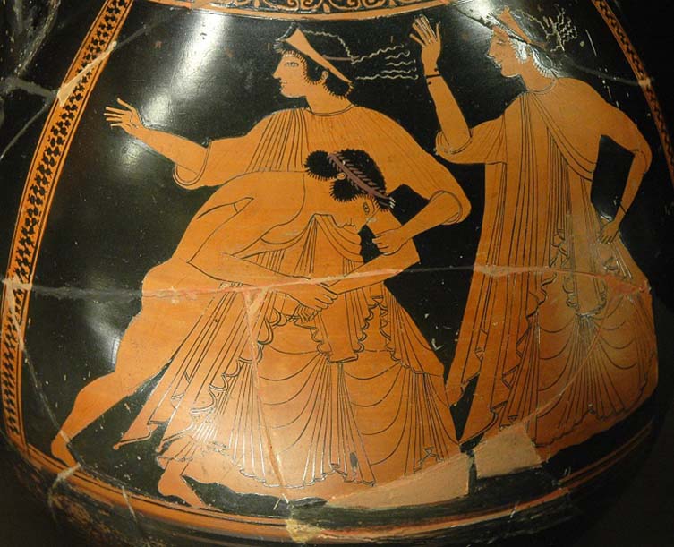 Menelaus intended to kill Andromache, for he believed that this woman was taking his daughter's place. But when he was about to commit this crime, Peleus arrived with troops to his grandson's house, and saved Andromache's life.