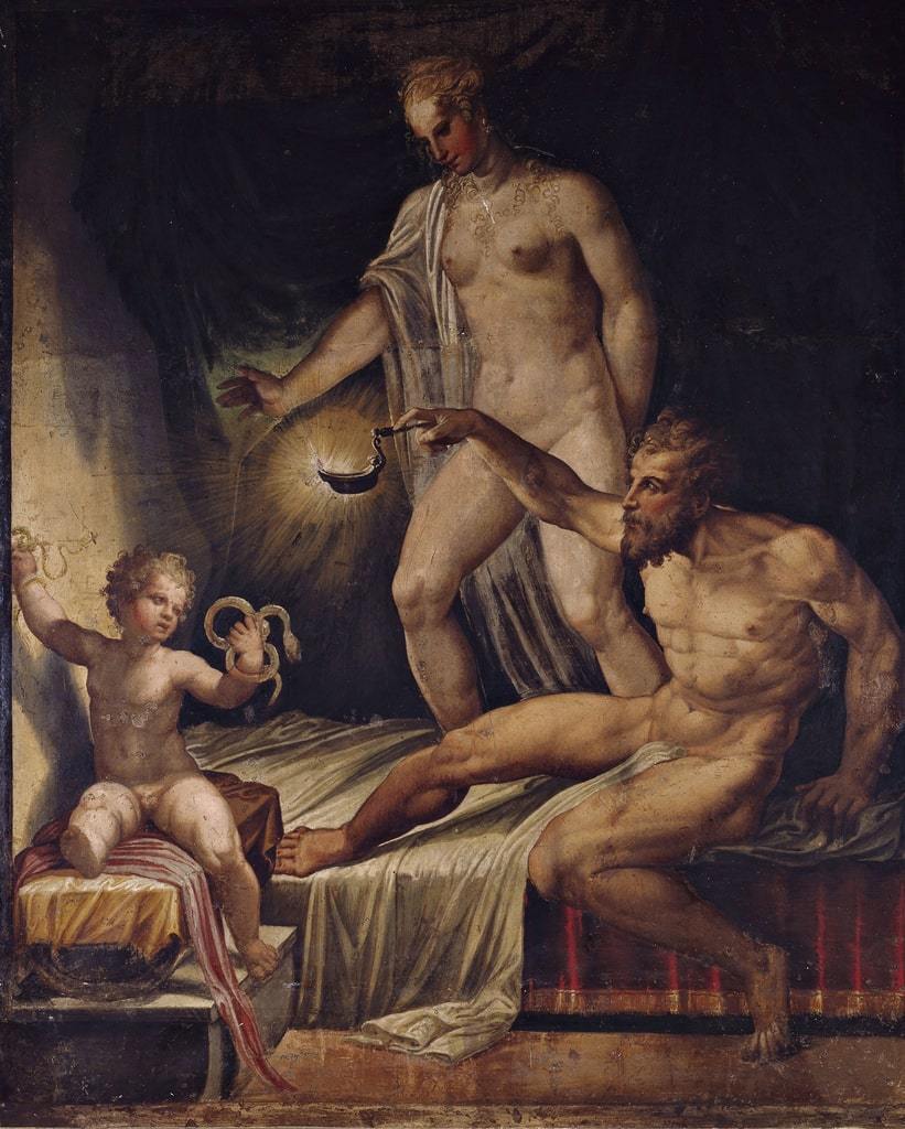 The next day Amphitryon returned and was somewhat taken aback when Alcmene wasn’t overjoyed to see him, although in her mind she had already given her love the welcome the day before. Nevertheless, Amphitryon and Alcmene lay together, but afterwards Amphitryon consulted the seer Tiresias, who told Amphitryon just what had occurred.
