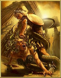 And so it was that Perseus set out one bright October morn in quest of the snake-infested, lolling-tongued, boar's-tusked noggin of a Gorgon whose very glance had the power to turn the person glanced upon to stone.