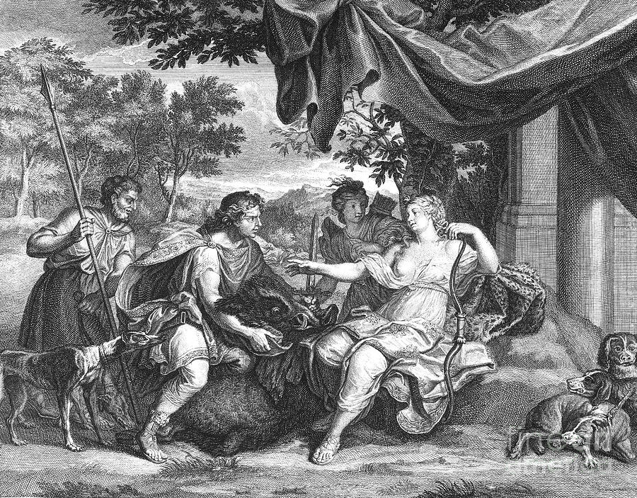 "His [Theseus'] aid even Calydon, who owned her Meleager, in distress and begged and besought--the cause of her distress a Boar, Diana's [Artemis'] Boar, her instrument of enmity and vengeance. For the king, Oeneus, it's said, when plenty blessed the year, to Ceres [Demeter] gave the first-fruits of the corn, to Lyaeus [Dionysos] poured his wine, to golden-haired Minverva [Athene] her oil from her own holy tree. The prized oblations, given first to gods of farm and field, reached all the gods of heaven. Only Latois' [Artemis, daughter of Leto] altars (so men say) were left uncensed, unserviced and ignored. The gods feel anger to. ‘This shall not pass unpunished. No!’ she cried, ‘I may be seen unhonoured, true, but never unavenged!’