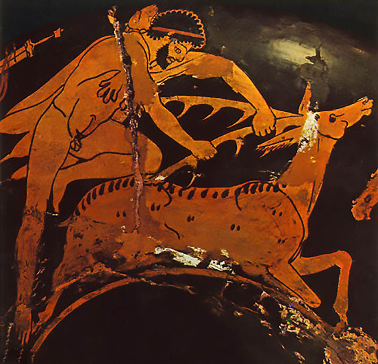 "The wild stag with golden horns in Arcadia he [Herakles] brought alive to show Eurystheus." - Hyginus, Fabulae 30