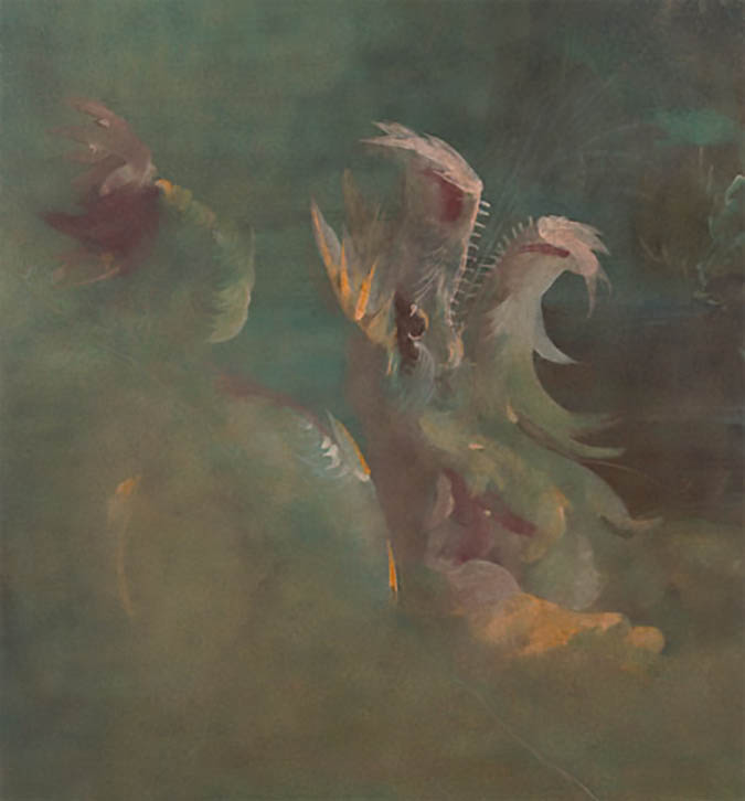 And now it was no further from the cliff than Balearic slings can hurl the flying lead across the sky, when the son of Jove [Zeus] suddenly sprang from the ground and soared into the clouds. The Draco (Dragon) saw his shadow on the sea and savaged what it saw . . . Inachides [Perseus], swooping headlong through the void, attacked the monster's back and, as it roared, deep in its shoulder sank his crescent blade. Wounded so sore, the beast now reared upright, high in the air, now dived below the waves, now turned like a fierce boar in frenzy when the pack bays all around. On his swift wings Perseus eludes the snapping fangs and strikes the parts exposed and plunges his curved sword between its ribs and in its back, all rough with barnacles, and where its tapering tail ends in a fish. The beast belched purple blood, sea spume and blood together. Perseus' plumes were soaked with spray, so heavy he could trust his ankle-wings no longer; then he saw a rock, bare in the still water but awash in rising seas. On this he braced himself, his left hand on a ridge, and with his sword stabbed time and time again the monster's groin.