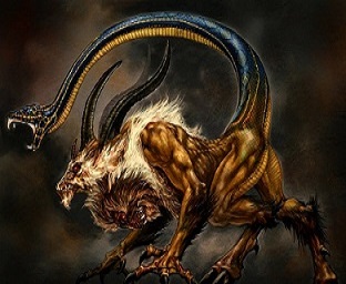 The Chimera was a monstrous fire-breathing female creature of Lycia in Asia Minor who was composed of the parts of three animals; a lion, a snake and a goat.