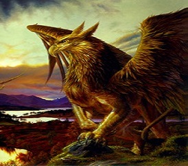 The Griffin is a legendary creature with the body, tail, and back legs of a lion; the head and wings of an eagle; and an eagle's talons as its front feet.