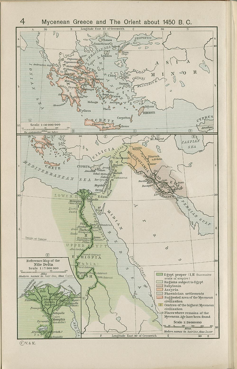 Click on image to enlarge: Map of Mycenae and Egypt (1450 B.C.)