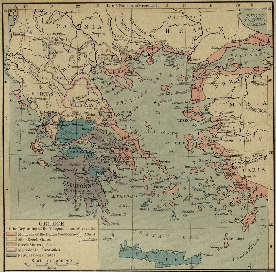 Click on image to enlarge: Map of Ancient Greece at the beginning of the Peloponnesian War Χάρτης (431 B.C.)