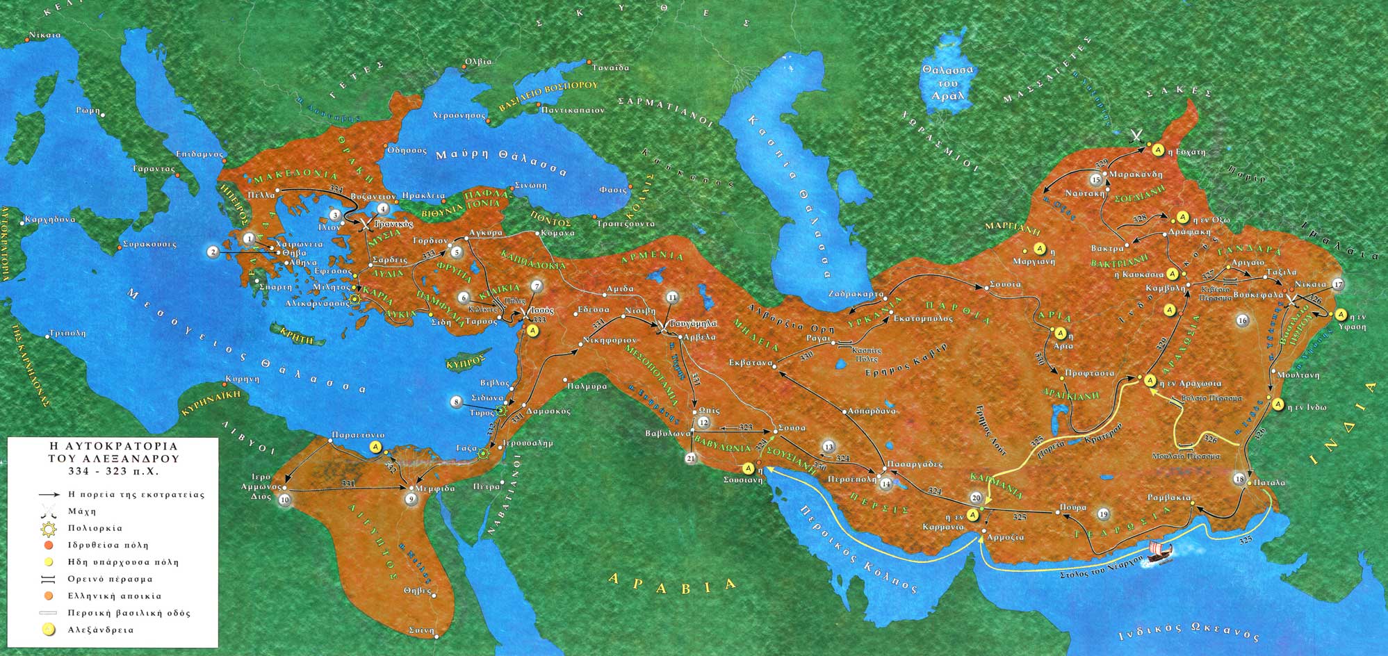 Click on image to enlarge: The Empire of Alexander the Great (334 - 323 B.C.)