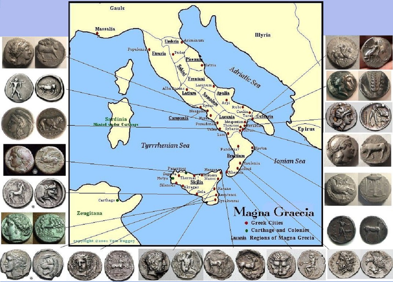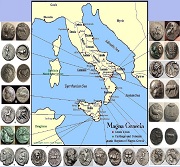 Click on image to enlarge: Numismatic Map of Magna Grecia (Sicily) and Greek Settlements around Italy