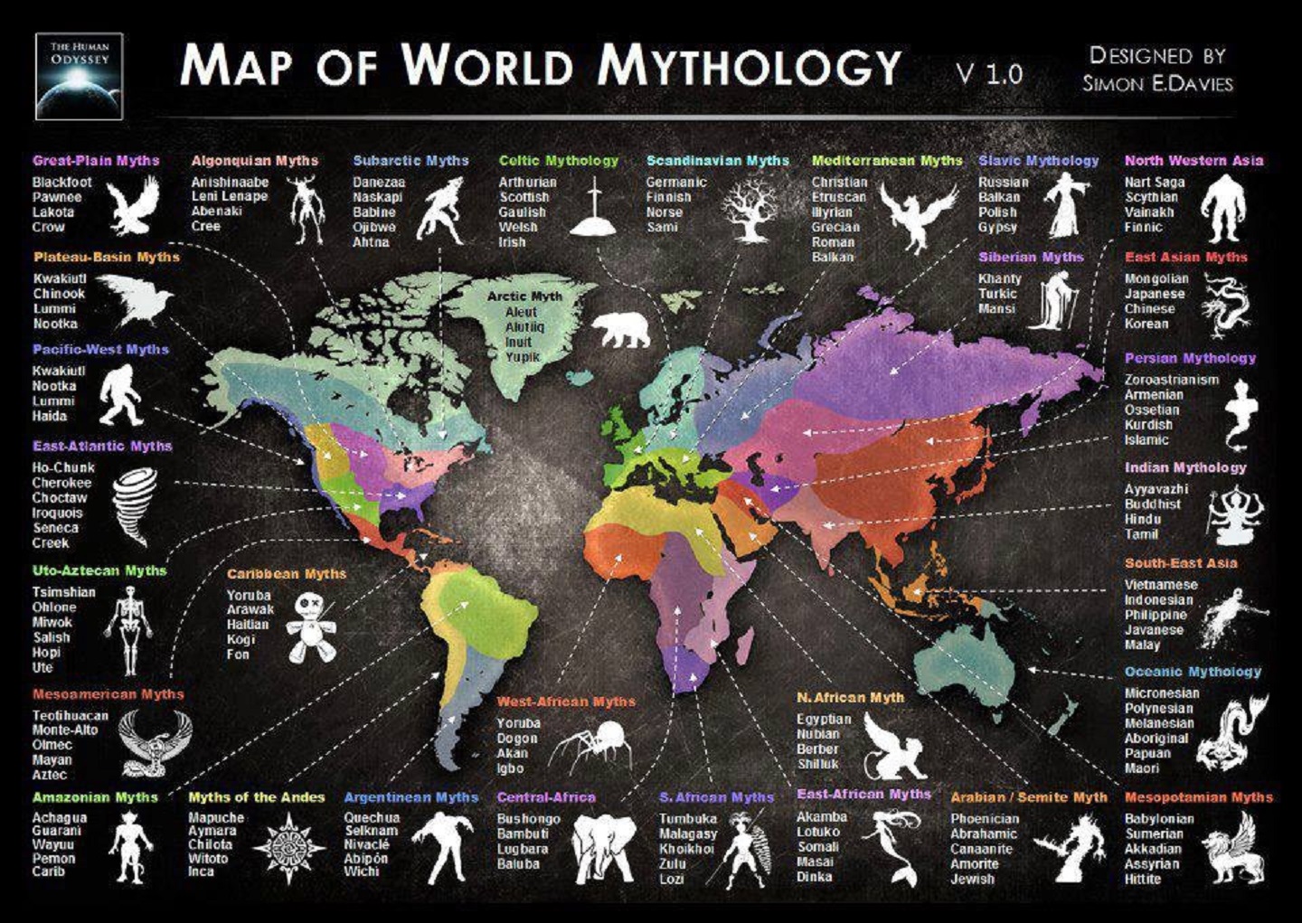 Click on image to enlarge: Map of the Mythologies all around the World