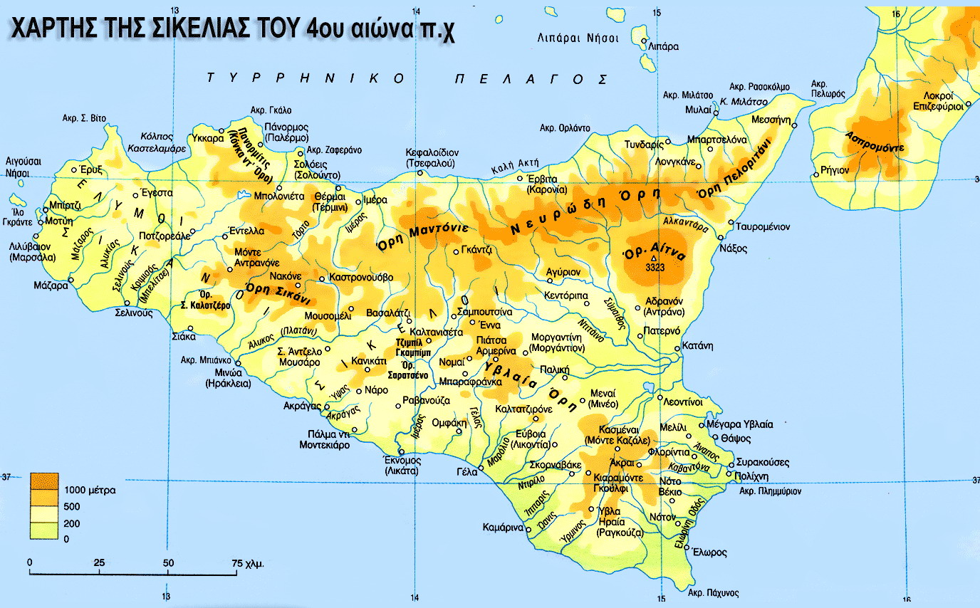 Click on image to enlarge: Ancient Map of Sicily (4th century B.C.)