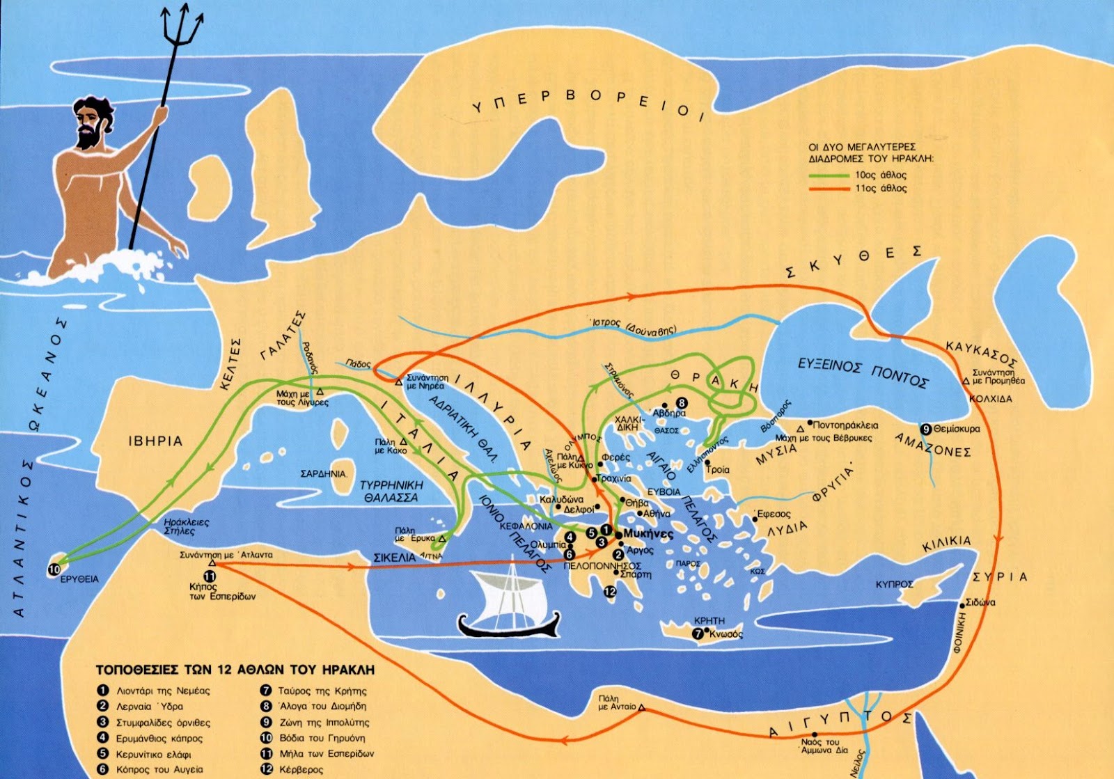 Click on image to enlarge: Map of Hercules' 12 labours