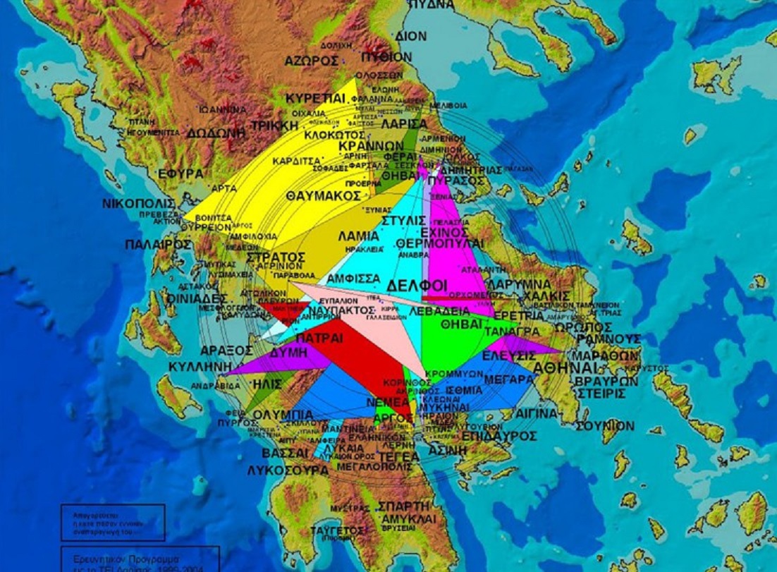 Click on image to enlarge: Map of the Holy Trigonometry regarding Ancient Greek Oracles and Sites of Ancient Greece