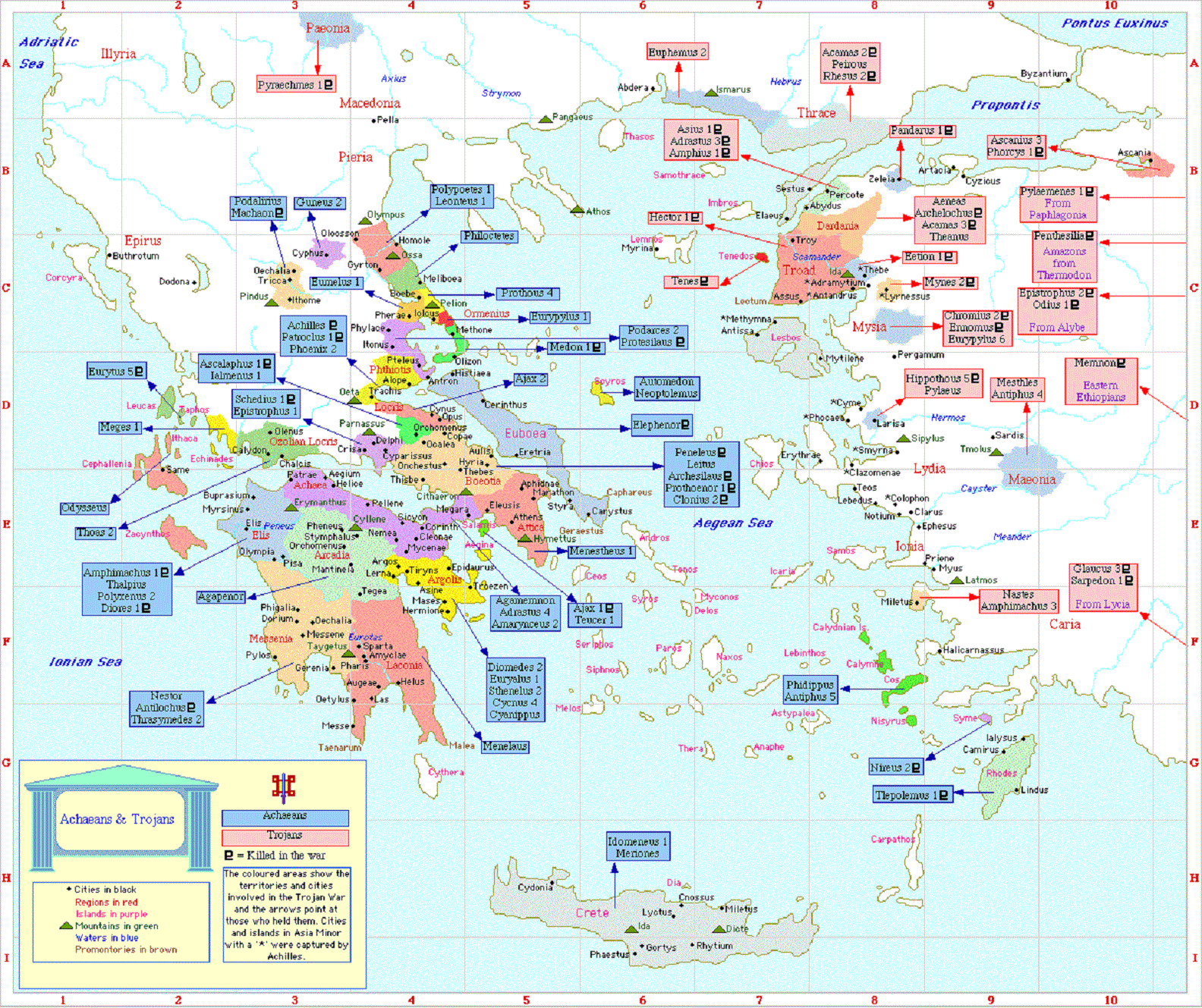 Click on image to enlarge: Map of the Heroes from the Trojan War
