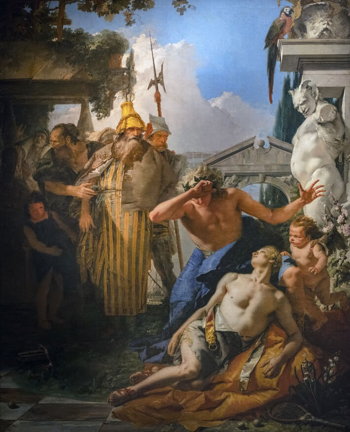 Apollo's face turned as pale as his dying lover as he held him in his arms. He used all his medicinal skills, and even tried giving ambrosia to heal Hyacinth's wound, but in vain, for he couldn't cure the wound done by the Fates. When Hyacinth died, Apollo wept, blaming himself. He wished to become a mortal and join his lover in his death. However, as that was not possible, Apollo promised that he would always remember Hyacinth in his songs and the music of his lyre.