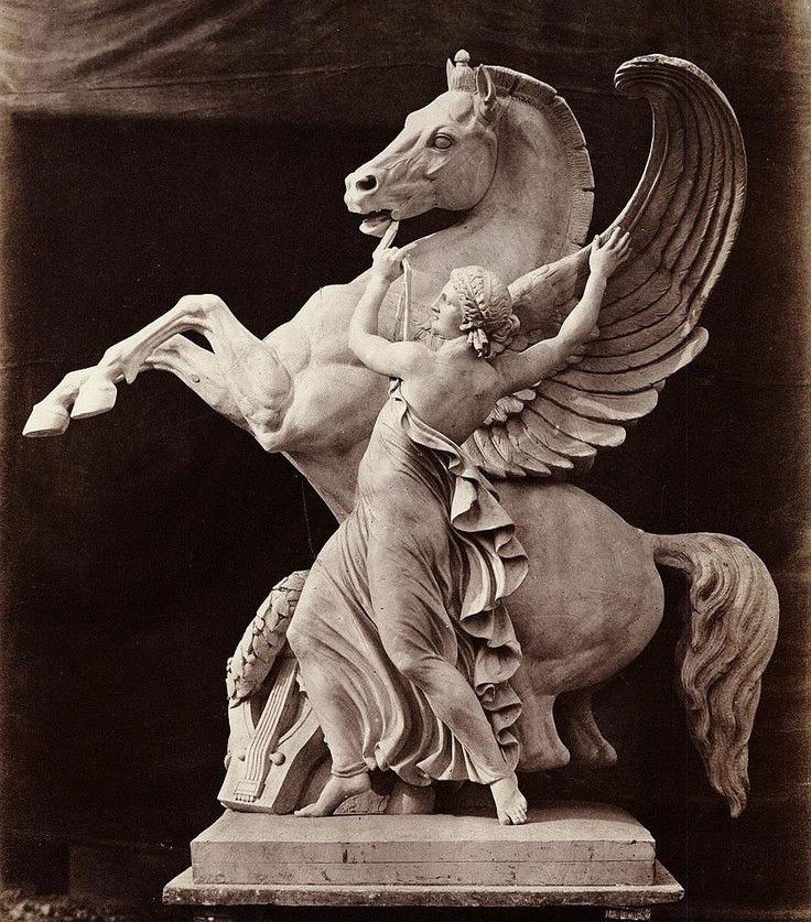 Apart from it, in art, she was usually depicted as a goddess with wings and a trumpet.