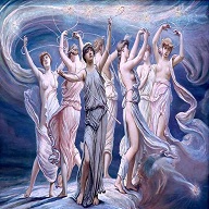 In Greek mythology, the Pleiades were the daughters of the Titan Atlas and the Oceanid Pleione. There were seven of these sisters, and they are named Alcyone, Celaeno, Electra, Maia, Merope, Sterope, and Taygete. Many of these daughters of Atlas played important roles in myth. Indeed, the Pleiades must have had considerable charms, for several of the most prominent male Olympian gods (including Zeus, Poseidon, and Ares) engaged in affairs with the seven heavenly sisters - and inevitably, these relationships resulted in the birth of children:
