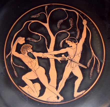 Within minutes, Sinis was the one tied to a pine tree, and shotly thereafter, Theseus was the one waving “so long” as Sinis flew above the tree tops in a brief flight of fancy, only to smash his entire body and soul up against another tree some distance away. Lights out for the villain…permanently. Justice done, Theseus dusted off his hands and got ready to continue on to Athens when he discovered that there was a kind of reward for dealing the death blow to Sinis and ending his tree fetish; Sinis had a daughter named Perigune who absolutely HATED her father. Glad that Theseus had sent him packing to whatever fate awaited him in the underworld, Perigune decided to tag along with Theseus for a while.