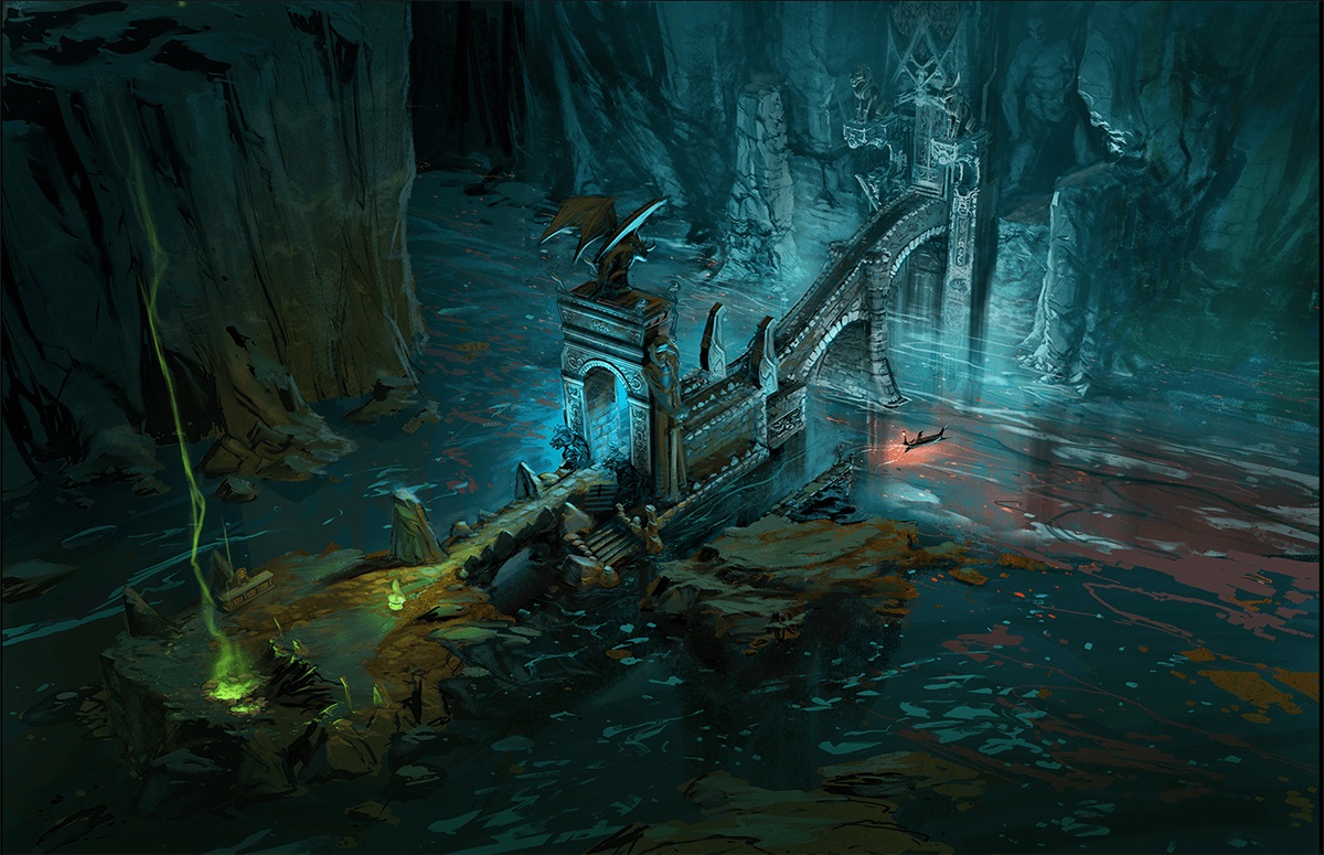 The five Rivers of the Underworld would criss-cross, and flow around, the Underworld, and were named as the Acheron, Styx, Lethe, Phlegethon and Cocytus.